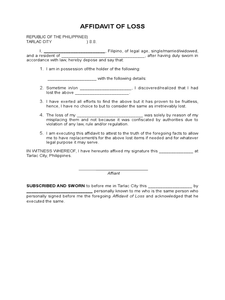 FREE 16+ Affidavit of Loss Samples & Templates in PDF - Collect all the necessary details about the lost. Here is a downloadable free sample of an affidavit of loss: Writing an affidavit of loss involves creating a formal, sworn statement declaring the loss of an important document or item, such as a passport, identification card, sim card, or valuable. To make things easier and save time, you can use our. You should also read this: Gaming Templates