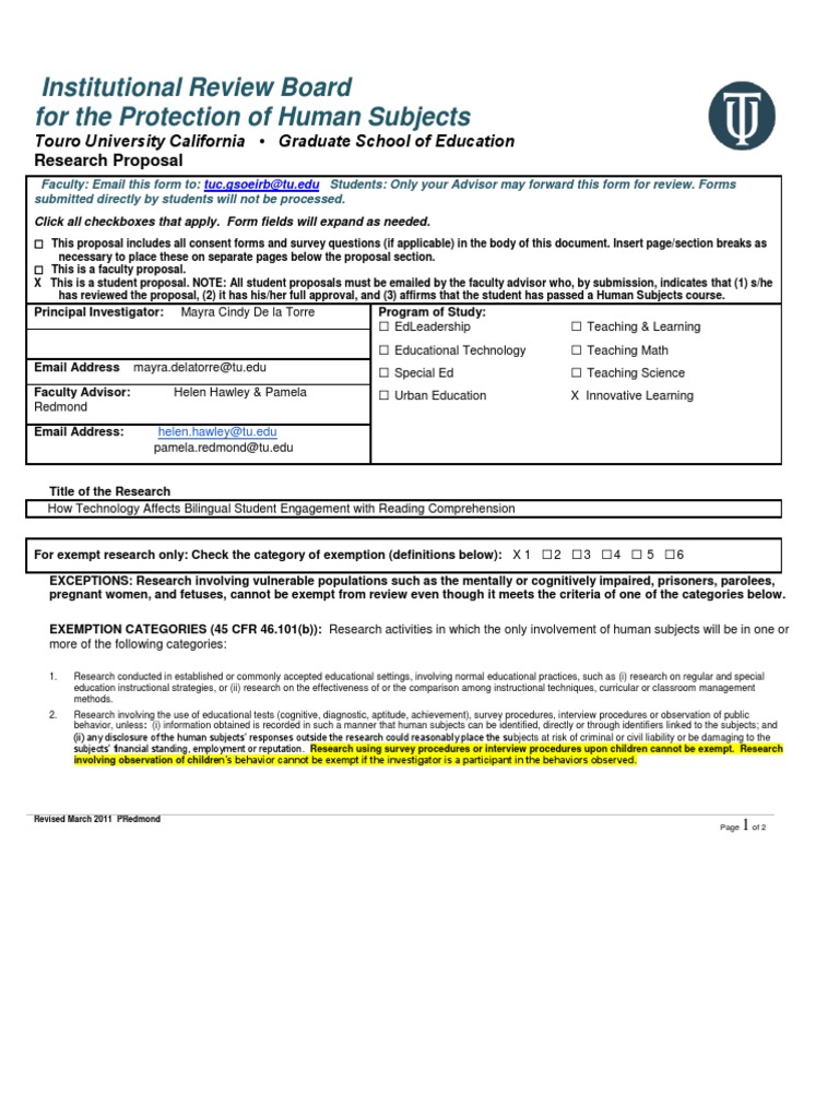 Irb Proposal Template - Sjsu bases recognition of these exemptions on the following two assumptions: The following provide details on what is expected when completing the irb proposal template. Human subjects put your name and the title of your proposal at the top of the first page and follow the format below in preparing any. This guide uses images of the irb proposal form's. You should also read this: Repo Letter Template