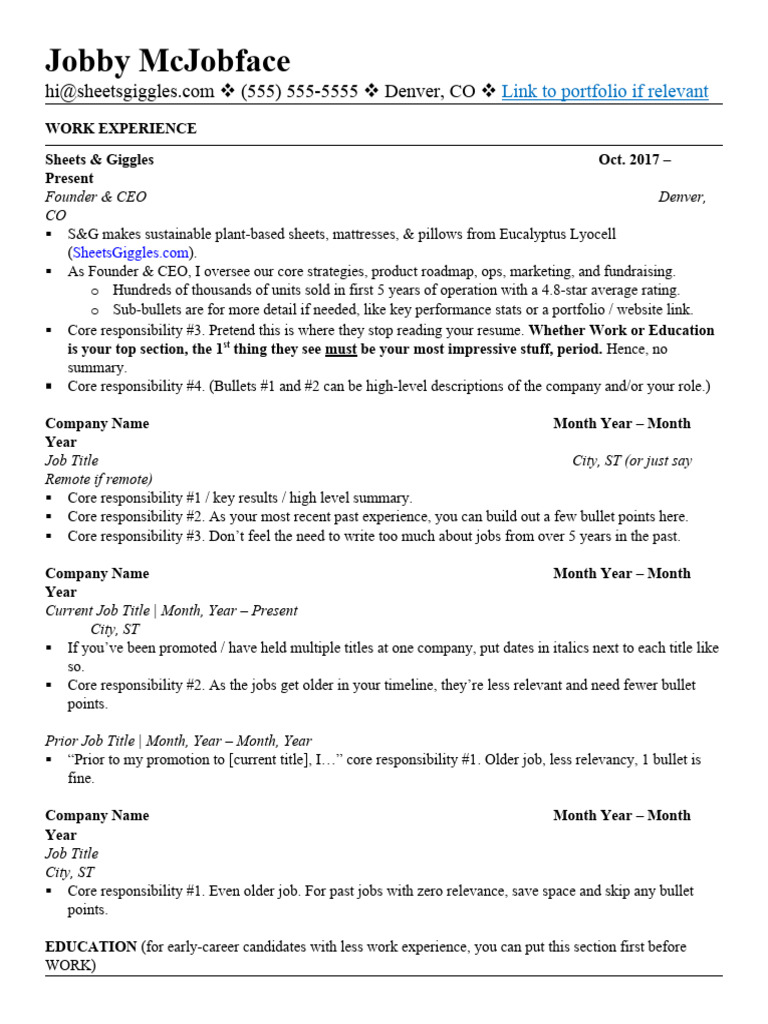 Sheets Giggles Resume Template PDF - Op here (colin at sheets & giggles). By popular demand, i made a google doc for people without ms word, and i immortalized this post and free template for posterity. This template is used by millions of candidates and based on the best resumes seen by recruiters. If you’re feeling grateful and need new sheets,. There’s more detailed resume advice. You should also read this: Sick Pay Policy Template