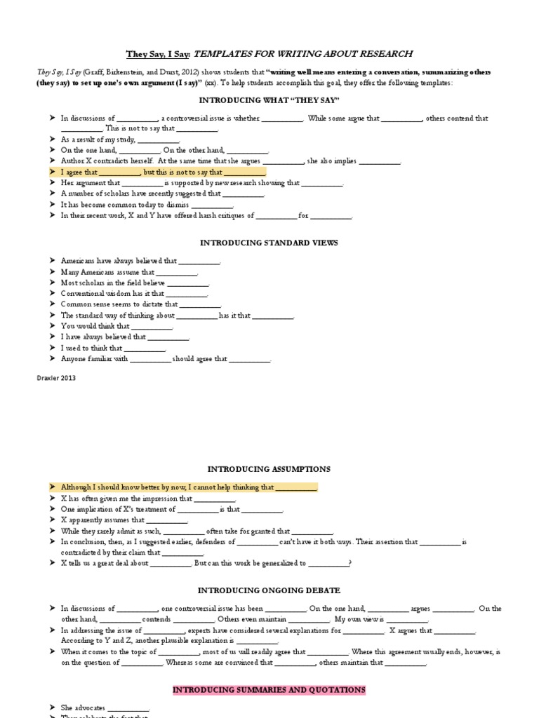 They Say Templates - Although i should know better by now, i cannot help. Making what “they say” into something you say: • when i began to research this topic, i [believed that / was confused by / misunderstood] _____. Starters and templates that will help writers incorporate and develop the kind of rhetorical moves demanded by the ap english language and composition essays. You should also read this: Notion Templates Create